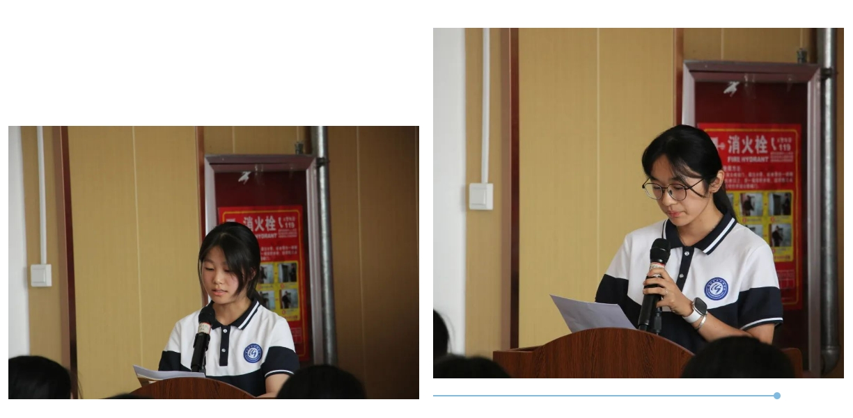 学生代表王艺霏、徐子涵依次上台发言,满是坚定与激情。王艺霏在发言中强调把握早读、晚自习等时间,利用碎片时间,借助知识点记录本等方法,勇于挑战压力,超越自我;徐子涵则是为同学们分享制定计划、专注课堂、总结知识、用错题本等方法,鼓励同学们们坚持追逐梦想。