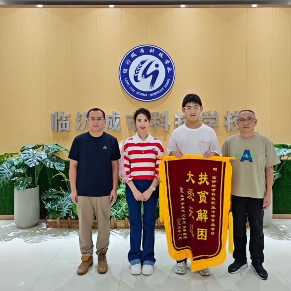 近日,一面写着“扶贫解困,大爱无边”的锦旗被送到了临沂城市科技学校的校园里,送锦旗的是我校刚毕业的高三学子刘士成。这面鲜红的锦旗背后,藏着一段学校与学子之间双向奔赴的温暖故事。