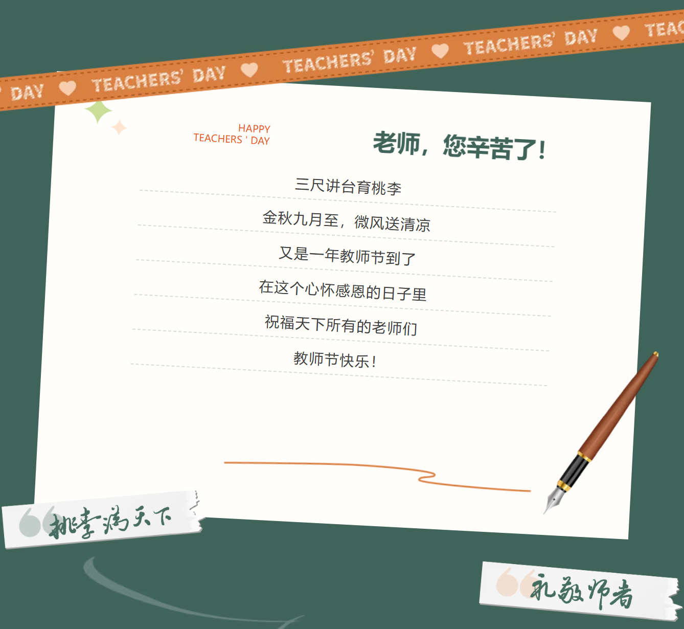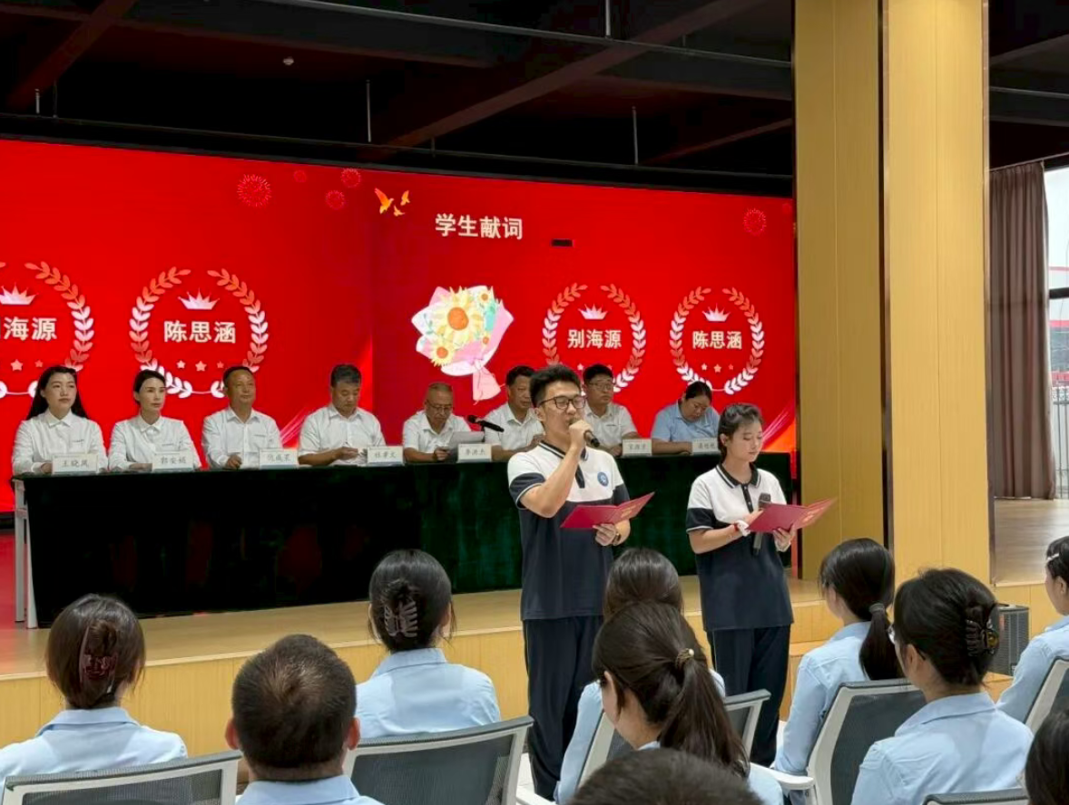 学生代表别海源、陈思涵上台献词,用真挚的语言讲述师生间的温暖故事,向全体教师表达节日的祝福与感恩之情,朴实话语中满是对老师的敬意。