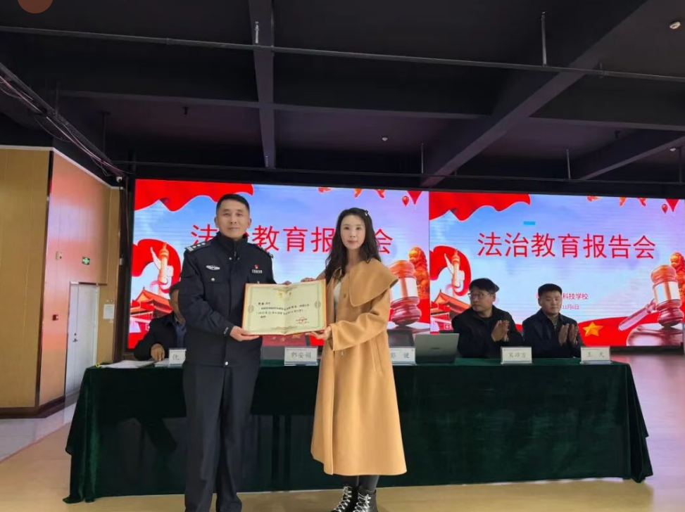 为进一步加强校园法治教育,筑牢青少年思想道德与法律安全防线,引导学生树立正确的价值观,远离违法犯罪,2025年11月6日,临沂城市科技学校特邀河东公安分局八湖派出所所长郭健同志,为我校学生开展法治教育报告,并正式聘请其为学校法治副校长,校领导与25级全体师生共同参与活动。仇校长全程主持,为整场活动画上圆满句号。
