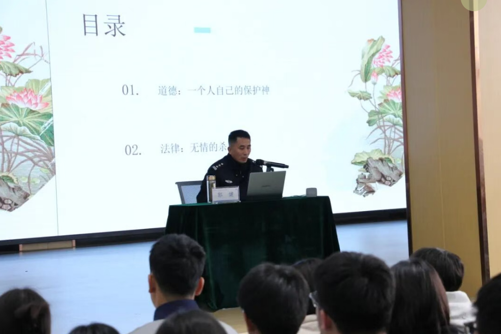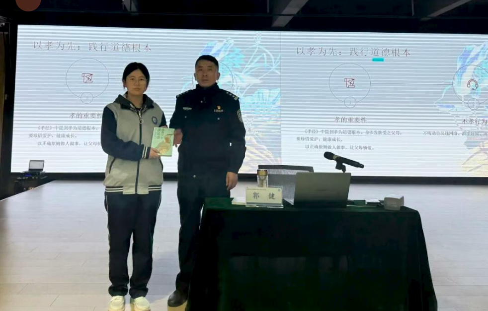 报告开篇,郭健警官便点明了道德对青少年成长的核心意义。郭所长通过历史名人的道德示范,讲述了孔子“仁”的倡导、周恩来“为中华之崛起而读书”的志向,让同学们明白道德不仅是行为规范,更是精神动力。同时,他也分享了身边的反面案例:辍学后沾染不良习气、屡屡触碰法律红线的毛某伟,因琐事纠集他人斗殴伤人的王某,皆因失守道德底线最终付出沉重代价。