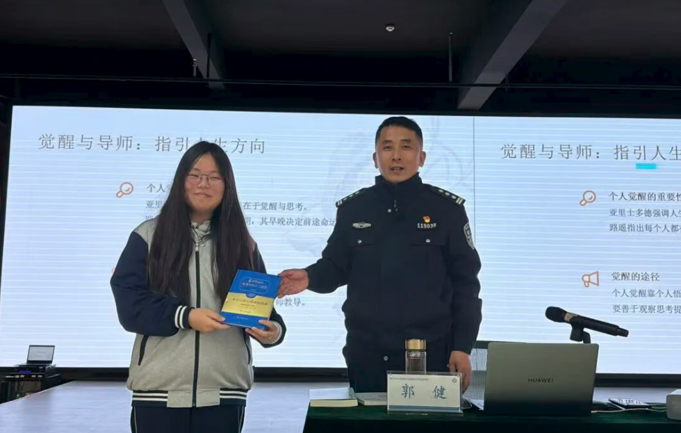 为鼓励大家深耕道德修养、增强法律意识,郭所长特意准备了三本书籍作为互动礼品,现场赠予积极参与的同学。