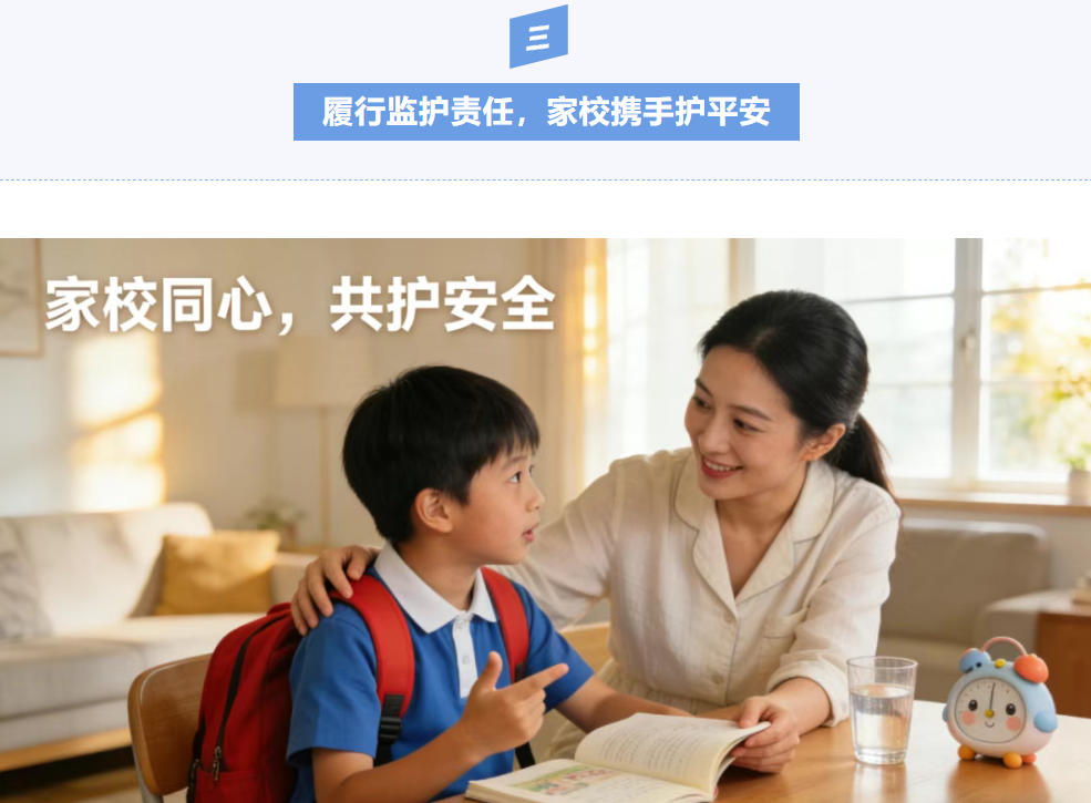 安全无小事,责任大于天。校园安全需要学校的严格管理,更需要家长的密切配合。让我们携手并肩,以高度的责任感共同守护孩子的成长之路,为他们营造安全、和谐、健康的学习生活环境